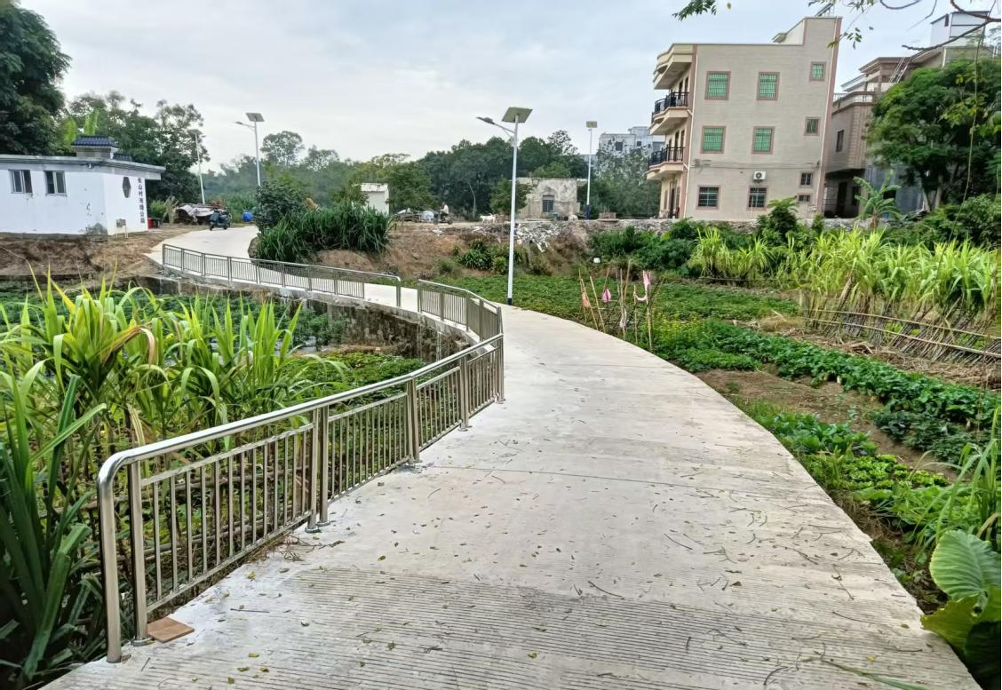 “铛、铛、铛……”清脆的敲击声与器械安装声交织回荡,在茂名市电白区马踏镇长山村的乡间小路上,施工人员手持工具,将一根根不锈钢防护栏精准对齐、稳稳固定在水泥路面。近日,随着这批防护栏在村内危险水域路段、临崖陡坡等重点隐患区域陆续安装到位,村民出行的安全屏障逐渐筑牢,这份实打实的帮扶举措赢得了群众的广泛赞誉。
