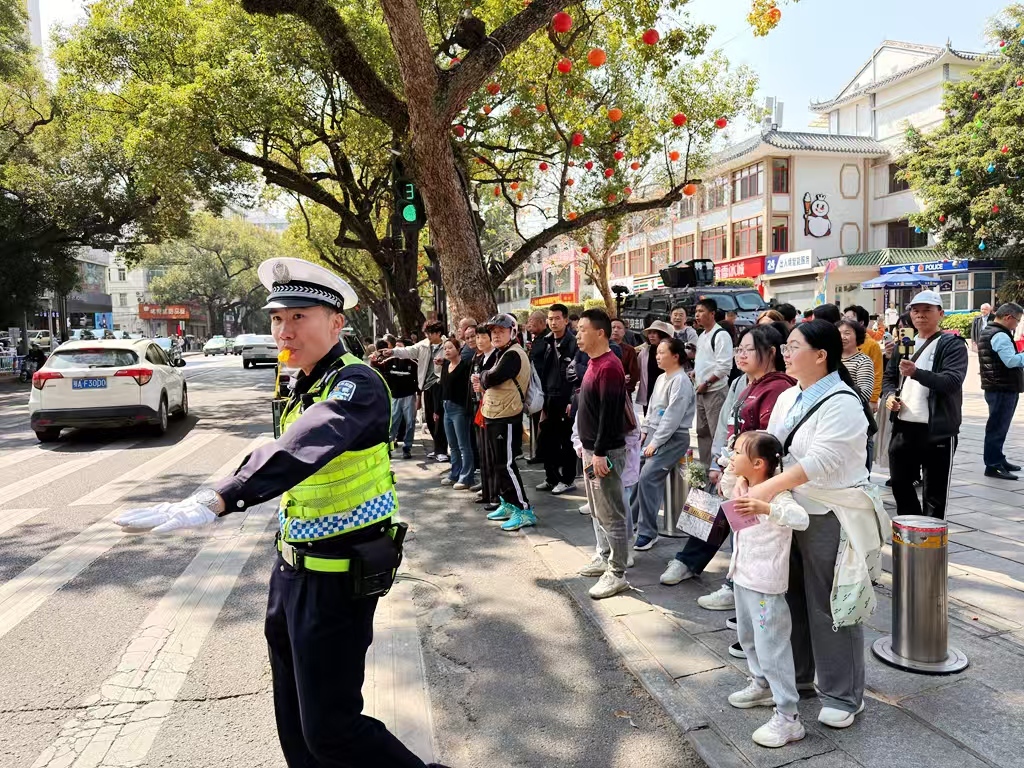 “定人、定时、定岗、定责、保畅通”,交管部门以“四定一保”为抓手,全面启动新春灯会交通安保工作,在环城西路、小西直街、塘尾街等核心区域,46个重点管控点位精准布设,200名安保力量定岗值守。